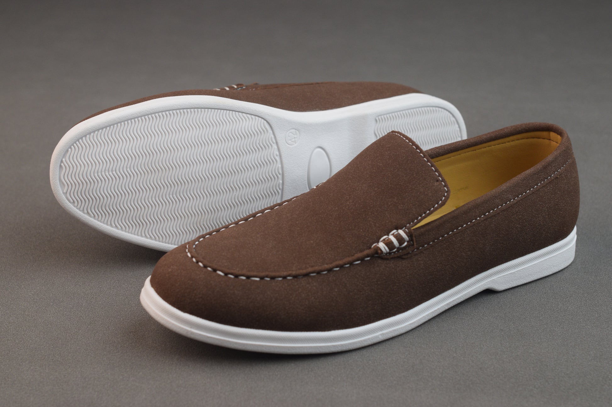 BROWN SUEDE WHITE SOLE MOCCASION